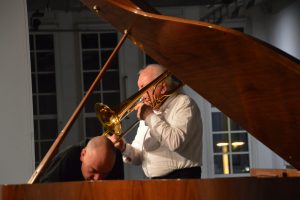 Stellares Aufgebot in Chemnitz: Der frisch gekürte Preisträger des bedeutendsten deutschen Jazzpreises, dem Albert-Mangelsdorff-Preis 2023, Conny Bauer, Jahrgang 1943, im Generationen übergreifenden Duo mit dem Berliner Pianisten Louis Rastig, Jahrgang 1987. Den Ausnahmeposaunisten Bauer, seines Zeichens einflussreiche Koryphäe des DDR-Jazz, verbindet eine lange Geschichte mit der sich ständig im Wandel befindenden Berliner Improvisationsszene. Mit seiner wahrscheinlich Genregrenzen sprengendsten Duo-Auskopplung Conny Bauer & Louis Rastig erfährt diese Verbindung eine neue, zeitgemäße Dimension. Der geschichtsträchtige Geist der freien Musik trifft hierbei auf das breite, musikalische Spektrum Rastigs, der als langjähriger, fester Bestandteil der vielfältigen Berliner Szene Einflüsse aus Echtzeitmusik, Rock und Jazz erkennbar werden lässt. Das Duo Conny Bauer & Louis Rastig kann dabei als Blaupause dessen bezeichnet werden, was gemeinhin der großen Kunst des Instant Composing zugeschrieben werden kann: mit einer unvergleichlichen Sensibilität für Dynamik und Dramaturgie werden Klangwelten in Echtzeit geschaffen, die sich im Sinne der Creative Music innovativ zwischen der Tradition des Avantgarde-Jazz und der Ästhetik der zeitgenössischen Kunstmusik bewegen. Eine musikalische Begegnung als Dialog für Posaune und Klavier, wie sie für den europäischen Schmelztiegel der improvisierten Musik Berlin beispielhafter nicht sein könnte.